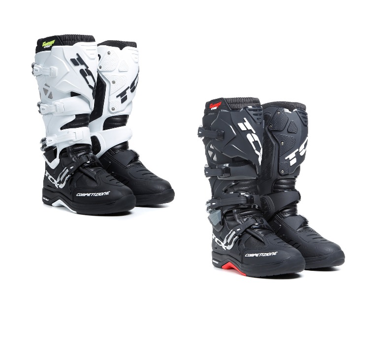 Motocross- und Enduro-Stiefel, die maximalen Schutz, perfekten Halt für den Knöchel in jeder Phase des Fahrens und optimalen Komfort für längere Sessions bieten. Comp Evo 2 Michelin® zeichnet sich durch das Double Flex Control-System aus: Eine am Knöchel platzierte Gelenkstruktur, die eine große Flexibilität bei den Vorwärts- und Rückwärtsbewegungen der Gelenke ermöglicht und gleichzeitig das Risiko unerwünschter Verdrehungen und Überdehnungen vermeidet. An allen strategischen Punkten wie Schienbein, Knöchel, Ferse und Zehenkappe sind Protektoren angebracht. Die Comp Evo 2 Michelin® sind mit der Michelin® Hybrid MX-Sohle gestaltet, deren Profil und Mischung speziell entwickelt wurden, um einen außergewöhnlichen Grip an den Fußrasten des Motorrads zu gewährleisten, auch bei widrigen Wetterbedingungen und auf allen Arten von Gelände, einschließlich der extremsten Situationen beim Enduro-Fahren. Das Verschlusssystem umfasst vier Polyurethan- und Aluminiumschnallen mit mikrometrischer Einstellung. Der Innenschaft verfügt über Klettverschlüsse für eine millimetergenaue Anpassung der Passform. Zur weiteren Anpassung der Passform weisen die Comp Evo 2 Michelin® das Calf Adjustment System auf, ein System, mit dem man die vordere Schienbeinschutzplatte auf zwei verschiedene Positionen einstellen und so den Gesamtumfang erweitern kann. Das atmungsaktive Stofffutter und seitliche Lüftungsschlitze halten den Fuß trocken – für maximalen Komfort.