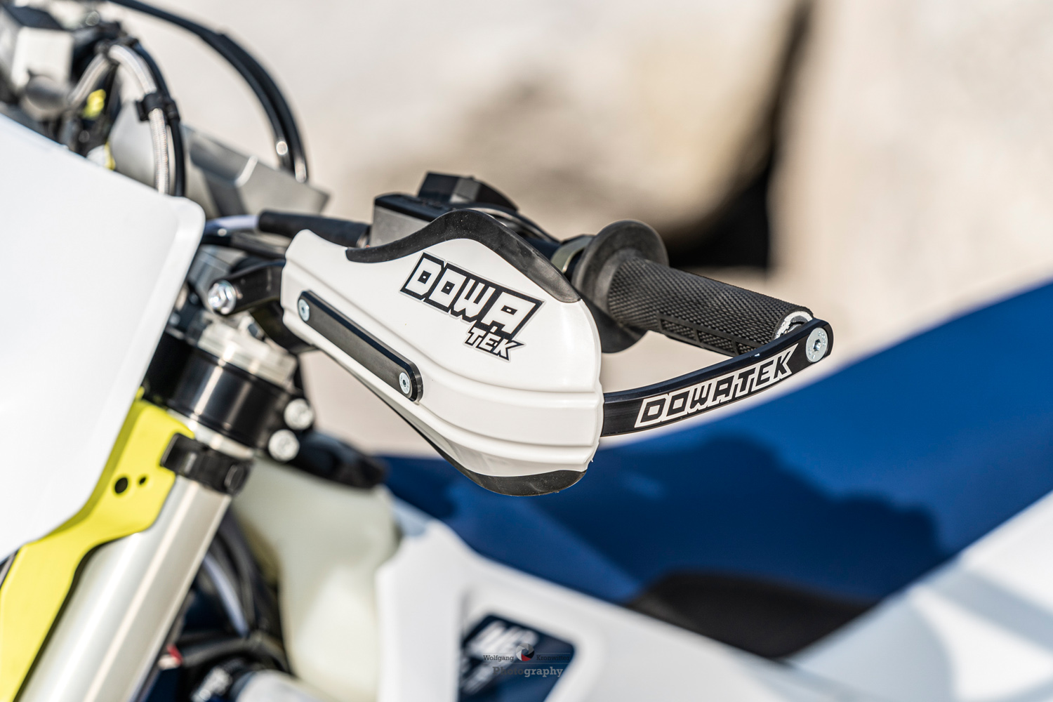 Extrem stabile Handprotektoren von Dowatek aus Aluminium, schwarz eloxiert. Die Bügel schützen den Brems- und Kupplungshebel, den Gasgriff und vorallem eure Hände.