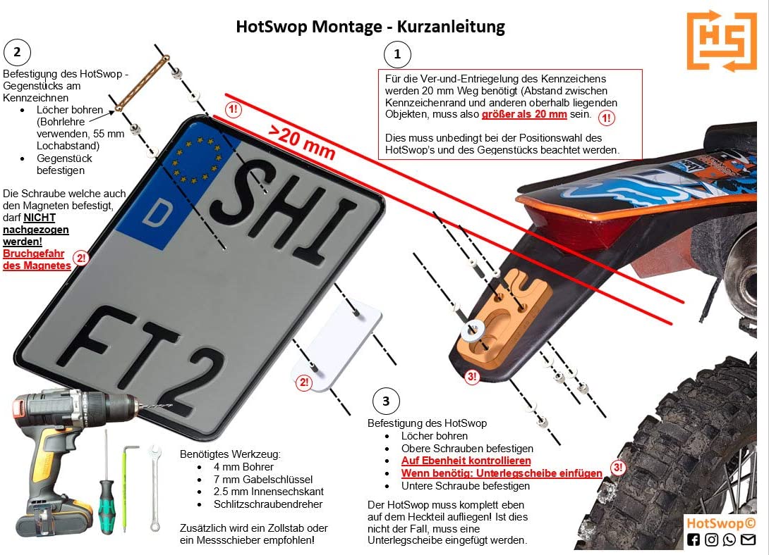 Ideal für Wechselkennzeichen und unabdingbar für alle begeisterten Enduro Piloten.