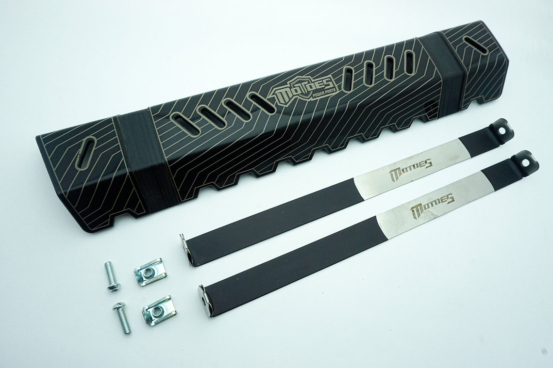 Der MotoES Endschalldämpferschutz besteht aus 5mm starken Polyethylenmaterial und schützt euren Endschalldämpfer vor Kratzer und Beschädigungen. Er wird mit 2 Edelstahlschellen am Endschalldämpfer befestigt.