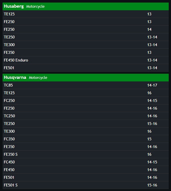 - HUSQVARNA TE FE 14-16, TC/TX 14-15, FC 14-15