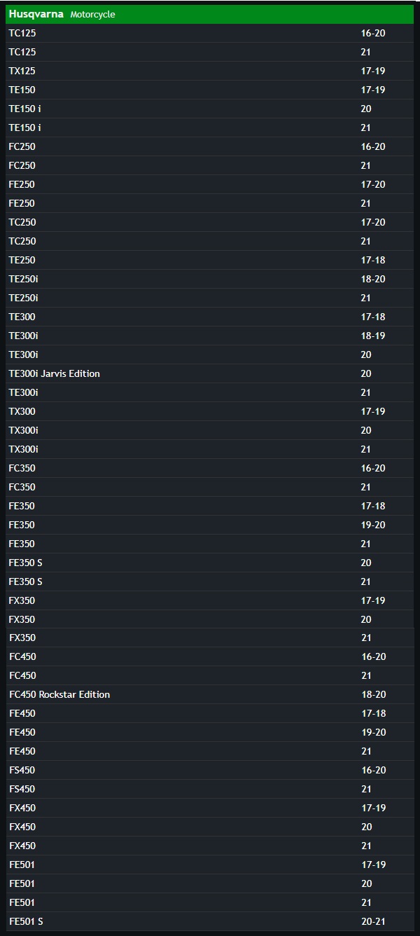 - HUSQVARNA TE 17, TC / TX 16, FC 16, FE 17
