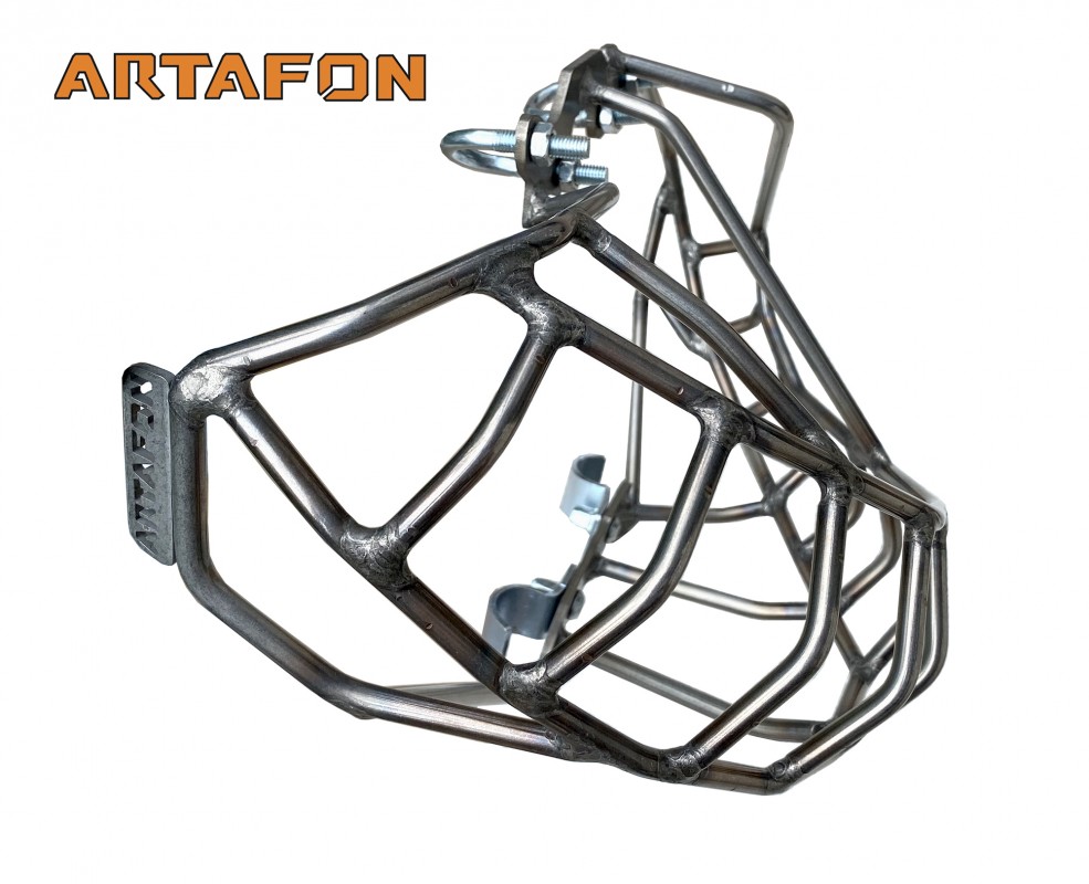 The exhaust pipe protector from Artafon consists of round 8mm stainless steel rods, which has 4 fastening points (2 above and 2 below) and thus prevents the exhaust pipe from bending.